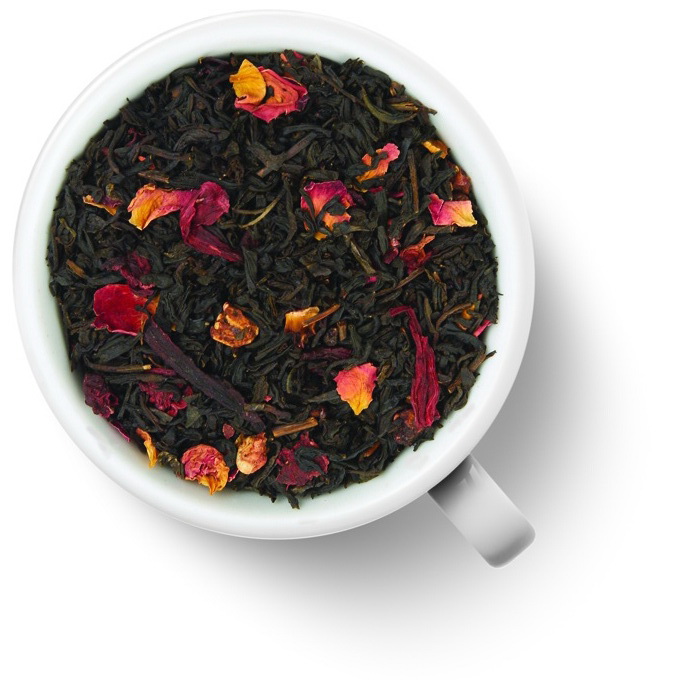 Смесь китайских, цейлонских и индийских чаев с добавлением гибискуса, клубники, ежевики и лепестков розы. Чай ароматизирован натуральными маслами.