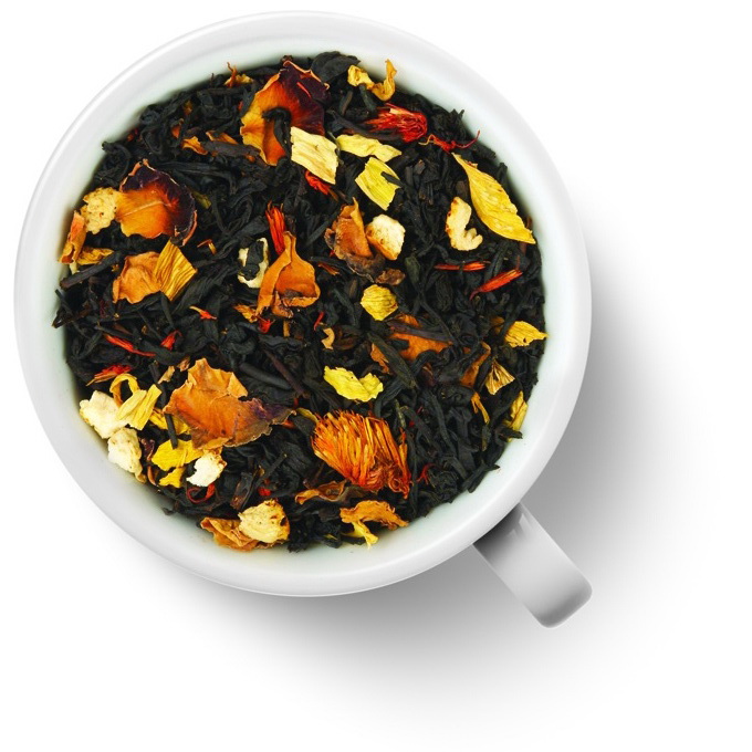 Смесь китайских, цейлонских и индийских чаев с добавлением цедры апельсина, лепестков розы и сафлора, цветков подсолнечника и кусочков ванили. Чай ароматизирован натуральными маслами.