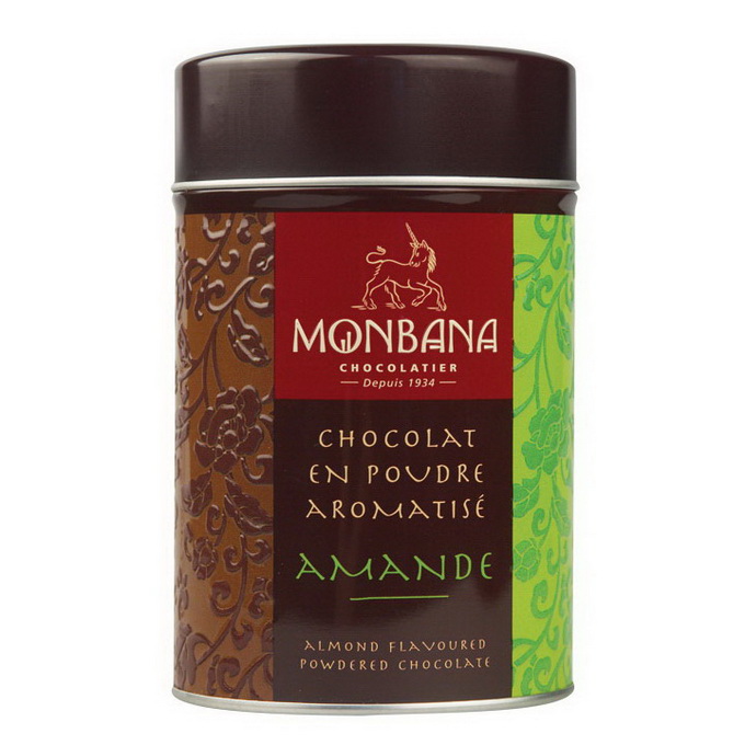 Горячий шоколад с ароматом миндаля. Упакован в банки по 250 г. Состав: Какао, сахар, фундук, ароматизатор миндаль.