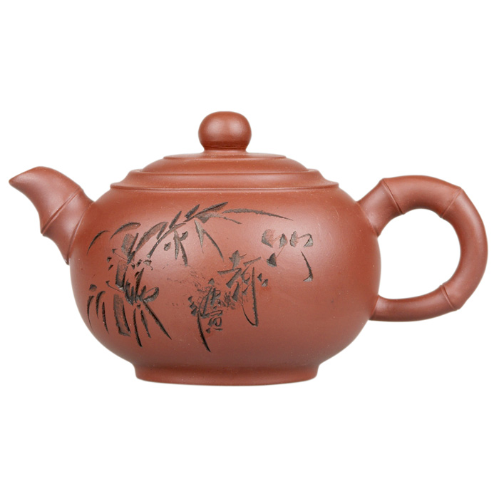 Глиняный чайник "Бамбук" 350мл. Традиционный китайский глиняный заварочный чайник самого высокого качества. В холодную погоду он долго сохраняет тепло, а в жару - предохраняет чай от скисания, благодаря воздуху, присутствующему в пористой структуре глины. Чай, заваренный в таком сосуде, долго сохраняет свою свежесть, цвет, аромат и вкус.