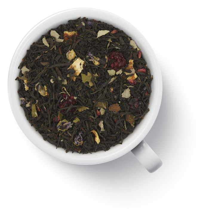 Смесь китайских, цейлонских и индийских чаев с цедрой апельсина, ежевикой, листьями и ягодами малины, лепестками голубой мальвы и ароматом айвы. Фасовка от 100 гр.