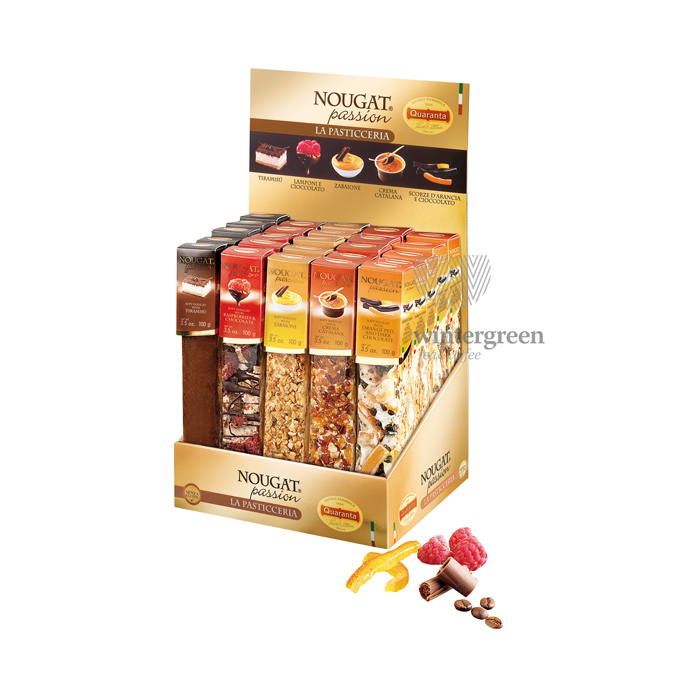 Краткое описание: Нуга серии "Passion" - это специально созданная коллекция нуги, которая приятно удивит даже самого взыскательного покупателя. Вкусы от классического до самого необычного! Диспенсер "Pasticceria" содержит батончики нуги пяти вкусов: "Апельсин в шоколаде", "Крем Брюле", "Малина в шоколаде", "Тирамису", "Сабайон". В диспенсере 25 шт по 100 гр. цена 110 р. за шт.